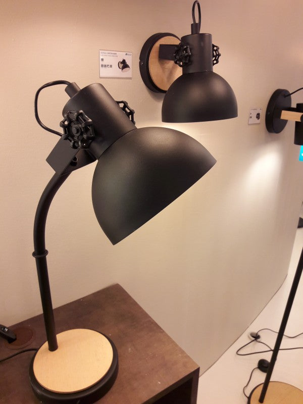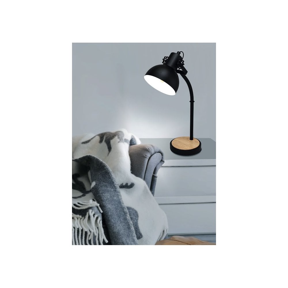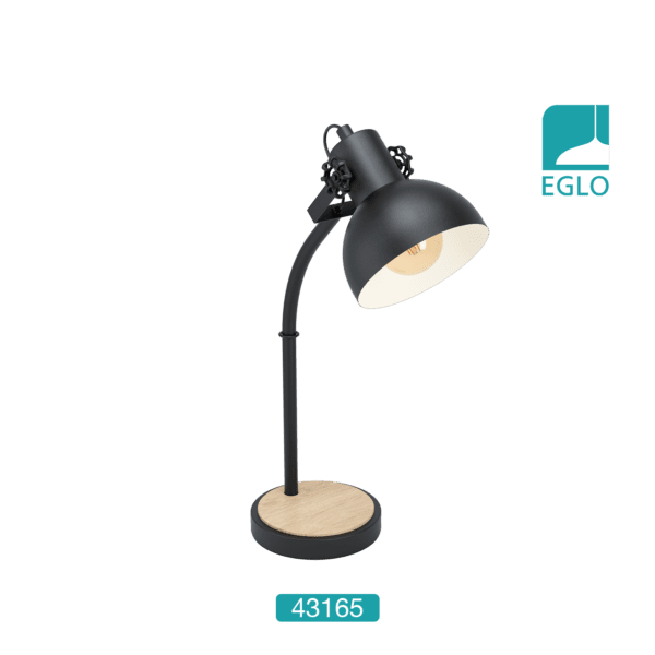 This Eglo Lubenham one light table lamp is finished in wood and black and has a creme inner. With an adjustable head, this industrially styled light has bolt detailing, making it eye-catching, whilst the creme inner reflects the light beautifully when illuminated.