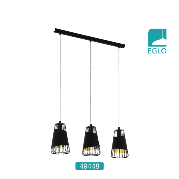This EGLO Austell three light ceiling bar light is finished in black and gold. The cage style lights are finished in black and have a stylish gold band around the middle. It would make a wonderful centerpiece to any room in particular over a breakfast bar or dining table.