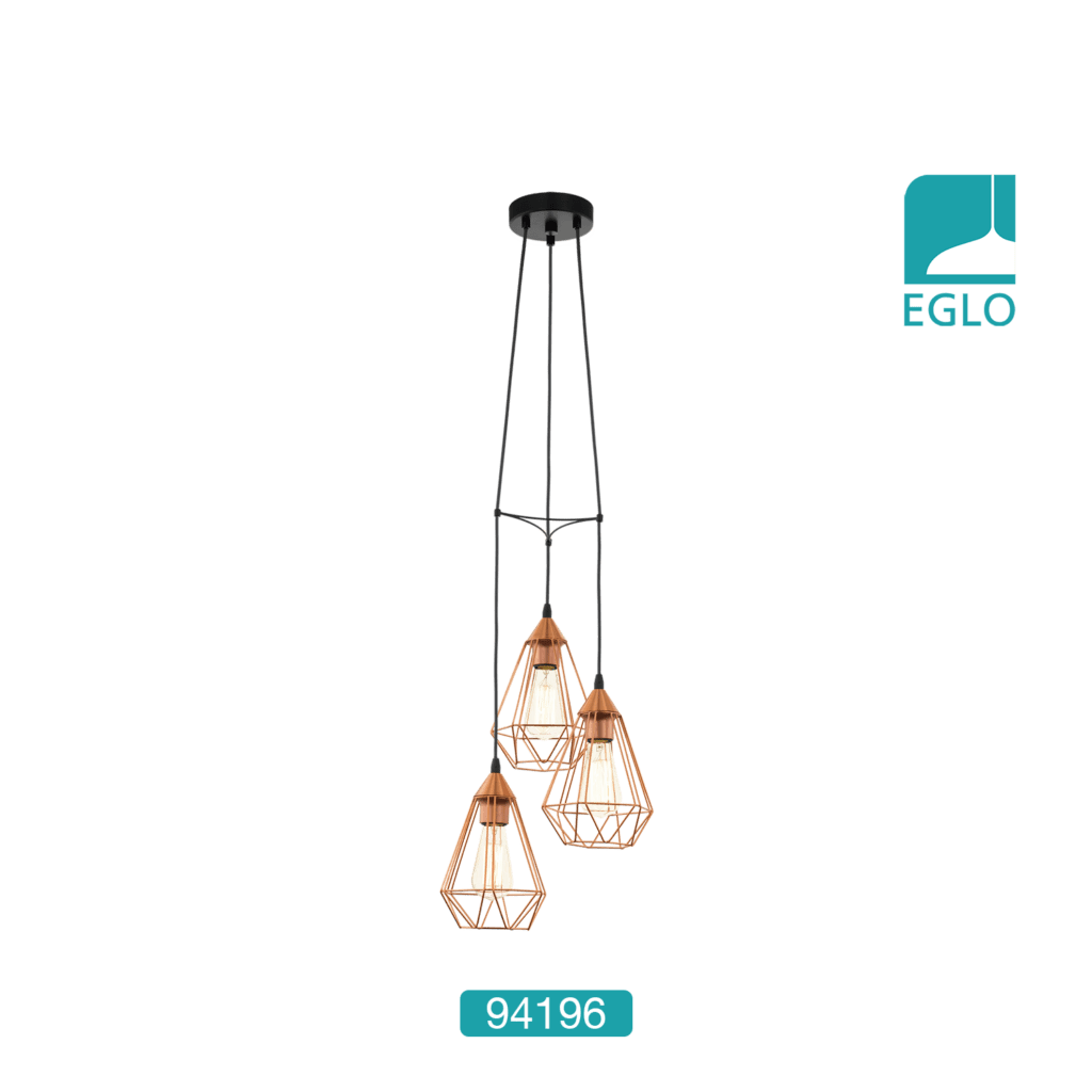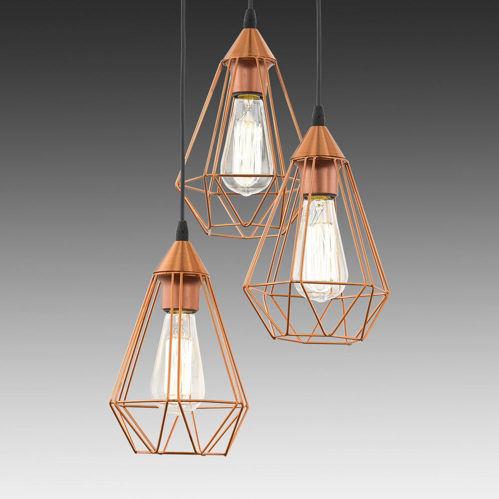 3 light ceiling pendant copper from the Tarbes range. This vintage 1 light pendant has a steel copper finish with a black flex and black ceiling rose.