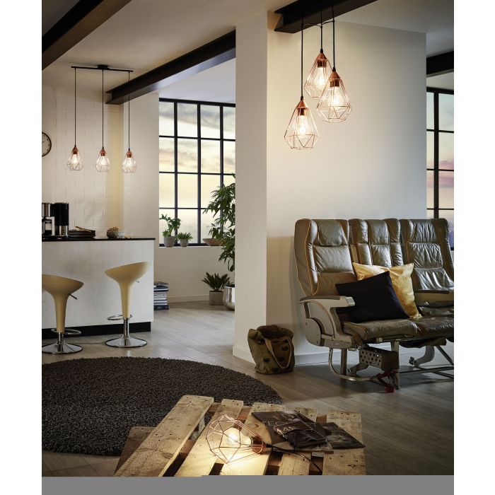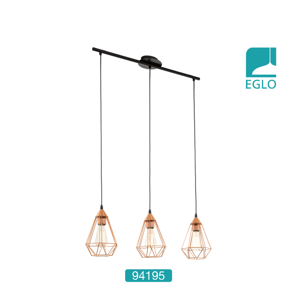 This is an Eglo product, the item code for this product is 94195. This is a 3 light ceiling pendant from the Tarbes range. This vintage 1 light pendant has a steel copper finish with a black flex and black ceiling rose.