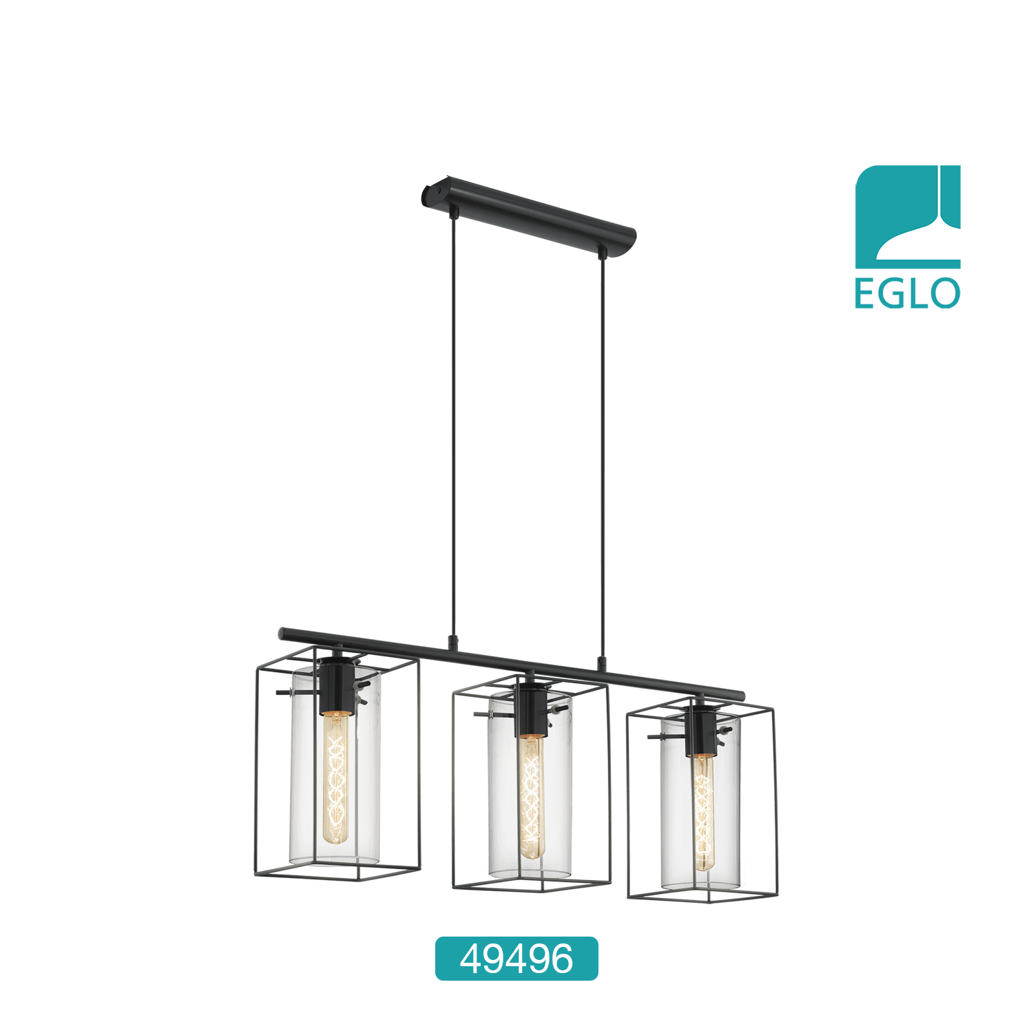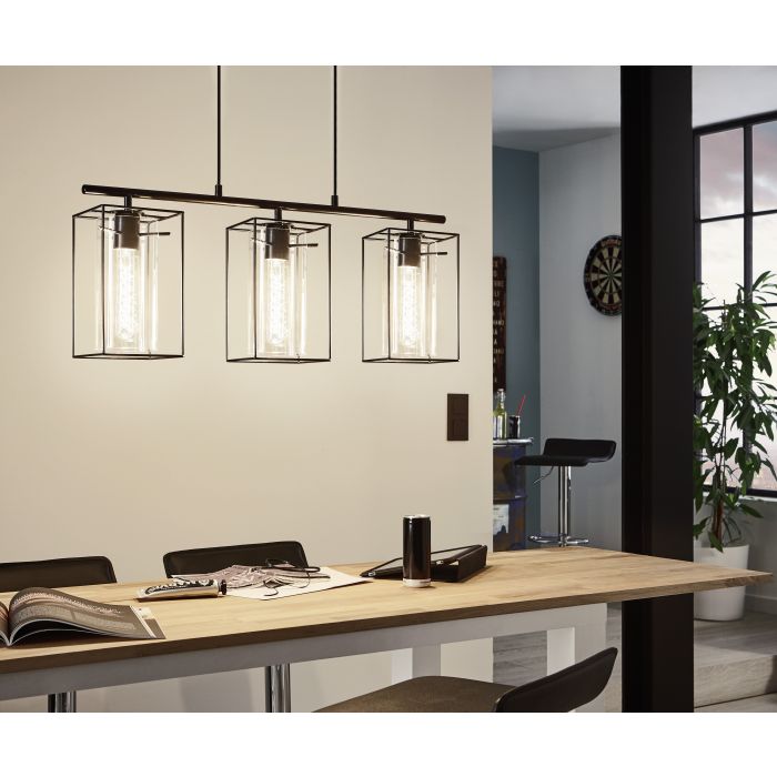 Eglo Lighting Loncino 3 light large ceiling pendant in an a black finish with smoked glass panels.
