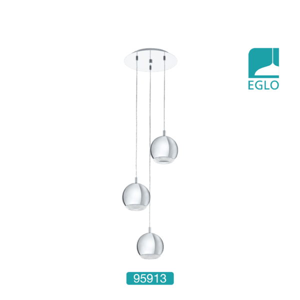 Eglo 95913 Conessa Three Light Cluster Pendant Light In Chrome With Clear Plastic. So