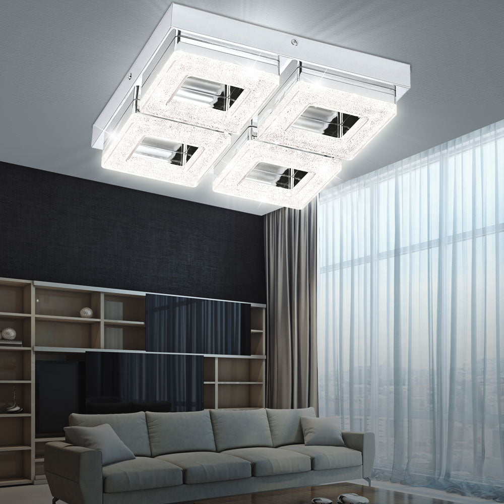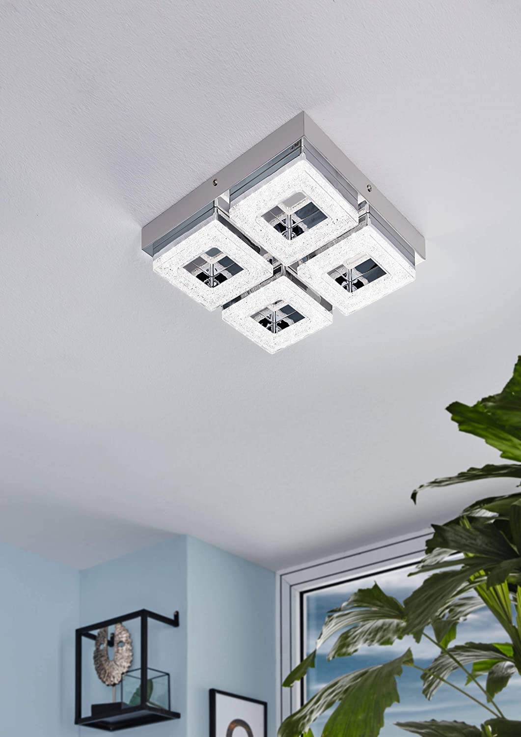 This EGLO Fradelo square LED wall/ceiling light is finished in chrome and crystal and can be hung on either the wall or the ceiling. This striking light is available in a number of sizes and this one has a length of 280mm (please see website for alternatives). The chrome casing supports the squares of crystals, making it a stunning addition to any room.