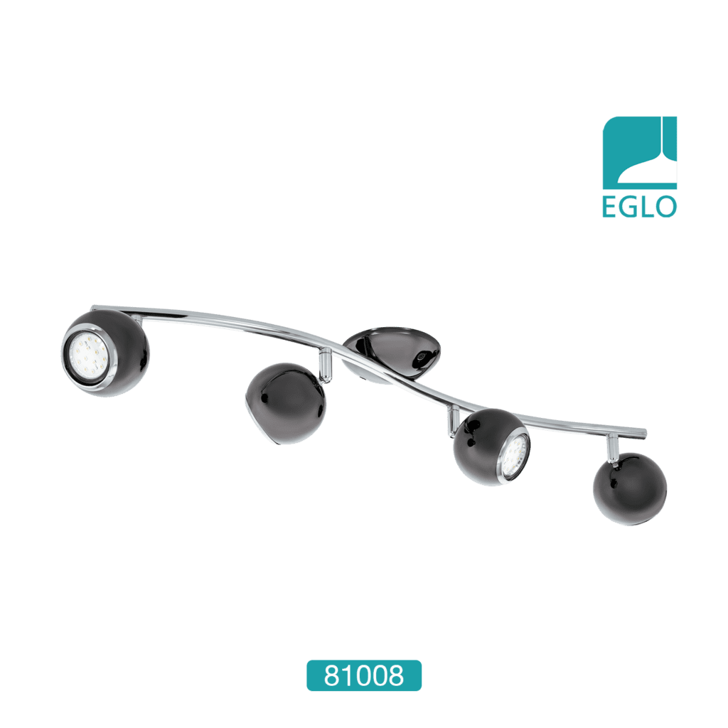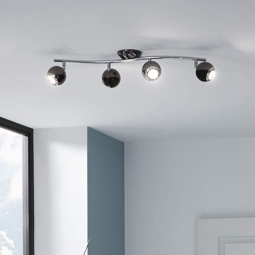 Eglo 31008 Bimeda 4 Light Ceiling Spotlight In Nickel-Nero And Chrome. It has adjustable heads allowing the user to direct the light as required. So the sleek lines, wavy bar and simple design would make this light an incredible addition to any room.