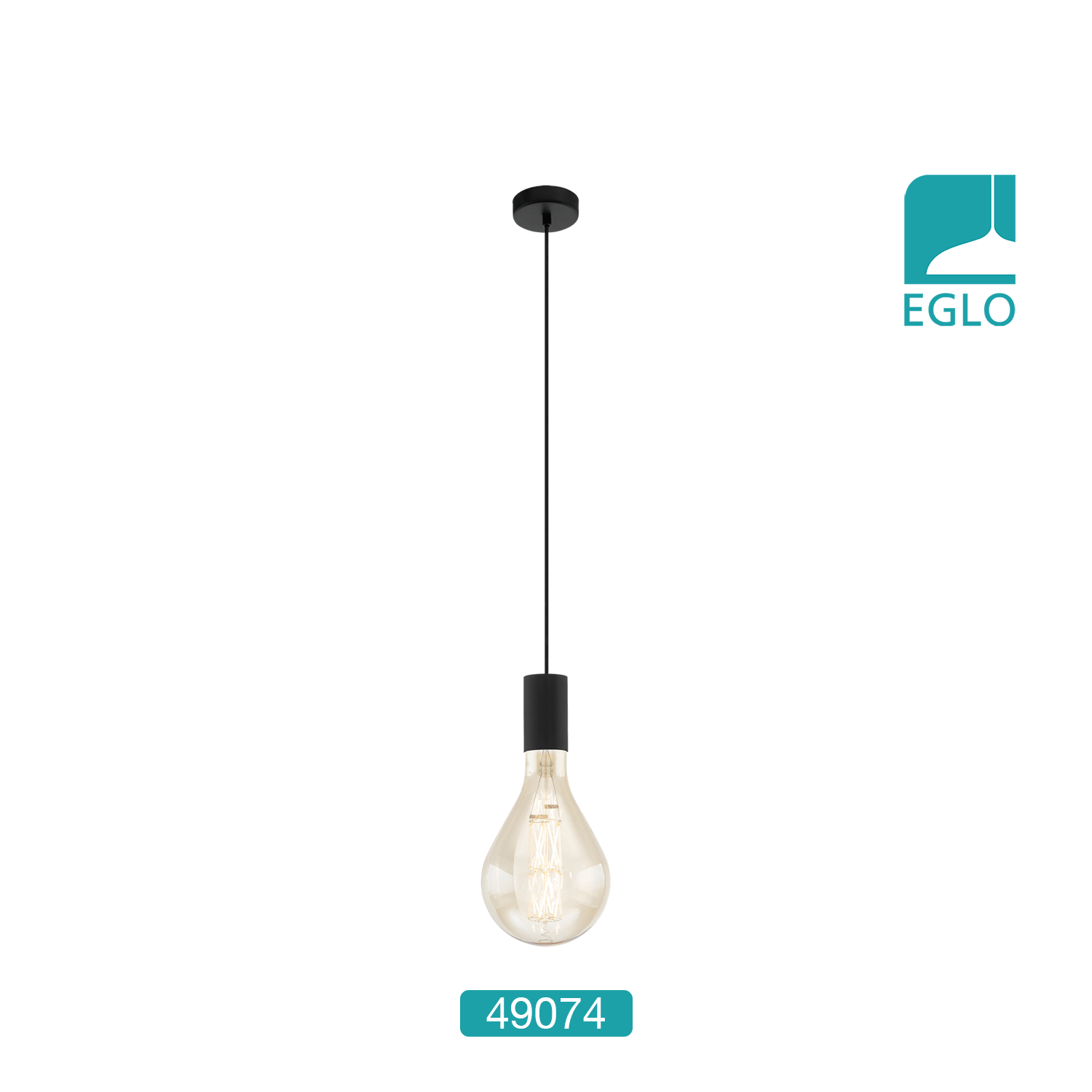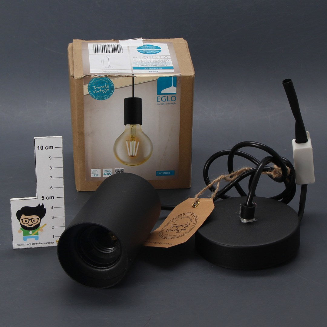 Eglo Vintage Tavistock single light pendant features a circular ceiling rose, black cable and lamp holder all in a black finish.