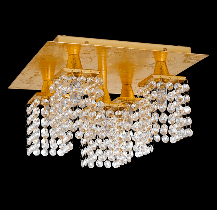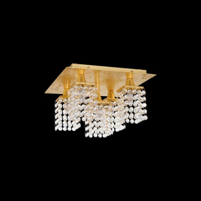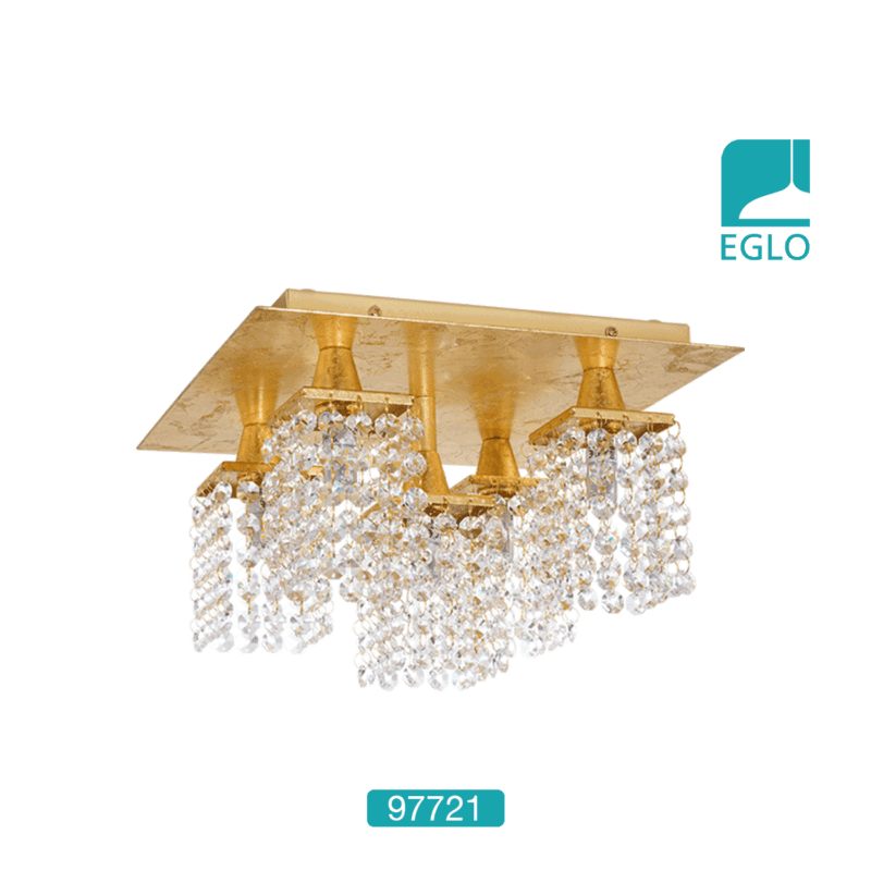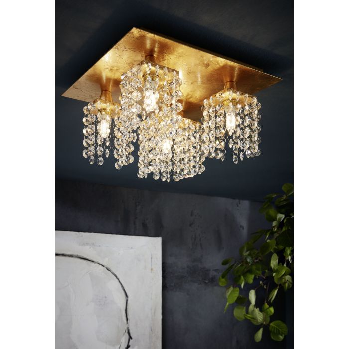 This EGLO Pyton Gold five light LED semi flush ceiling light is finished in gold and crystal. The five shades are constructed from hanging clear crystals which catch the light beautifully when illuminated. It would make a striking addition to any room.