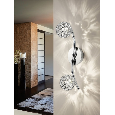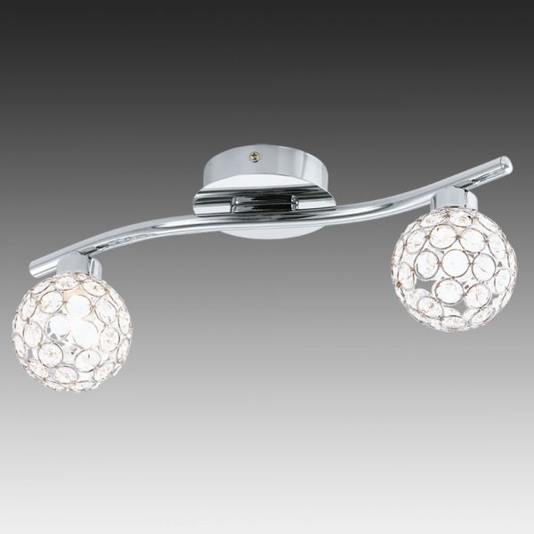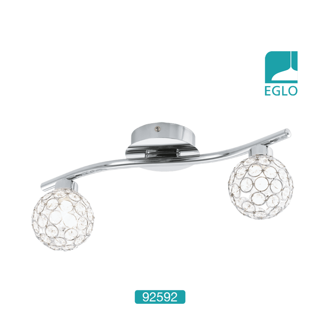 Eglo 92592 Ribolla 2 Light Ceiling Spotlight In Chrome And Crystal. It comes complete two with crystal shades. Then each crystal is surrounded by chrome and individually fixed to the shades. Then it’s creating a stunning lighting effect when illuminated. It would make a beautiful addition to any room.