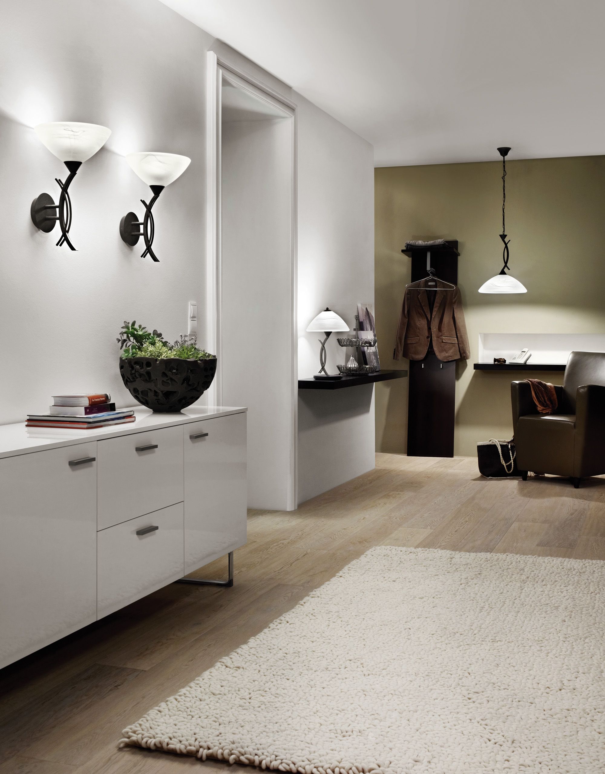 wall luminaire;steel,dark brown /alabaster glass,white;E27