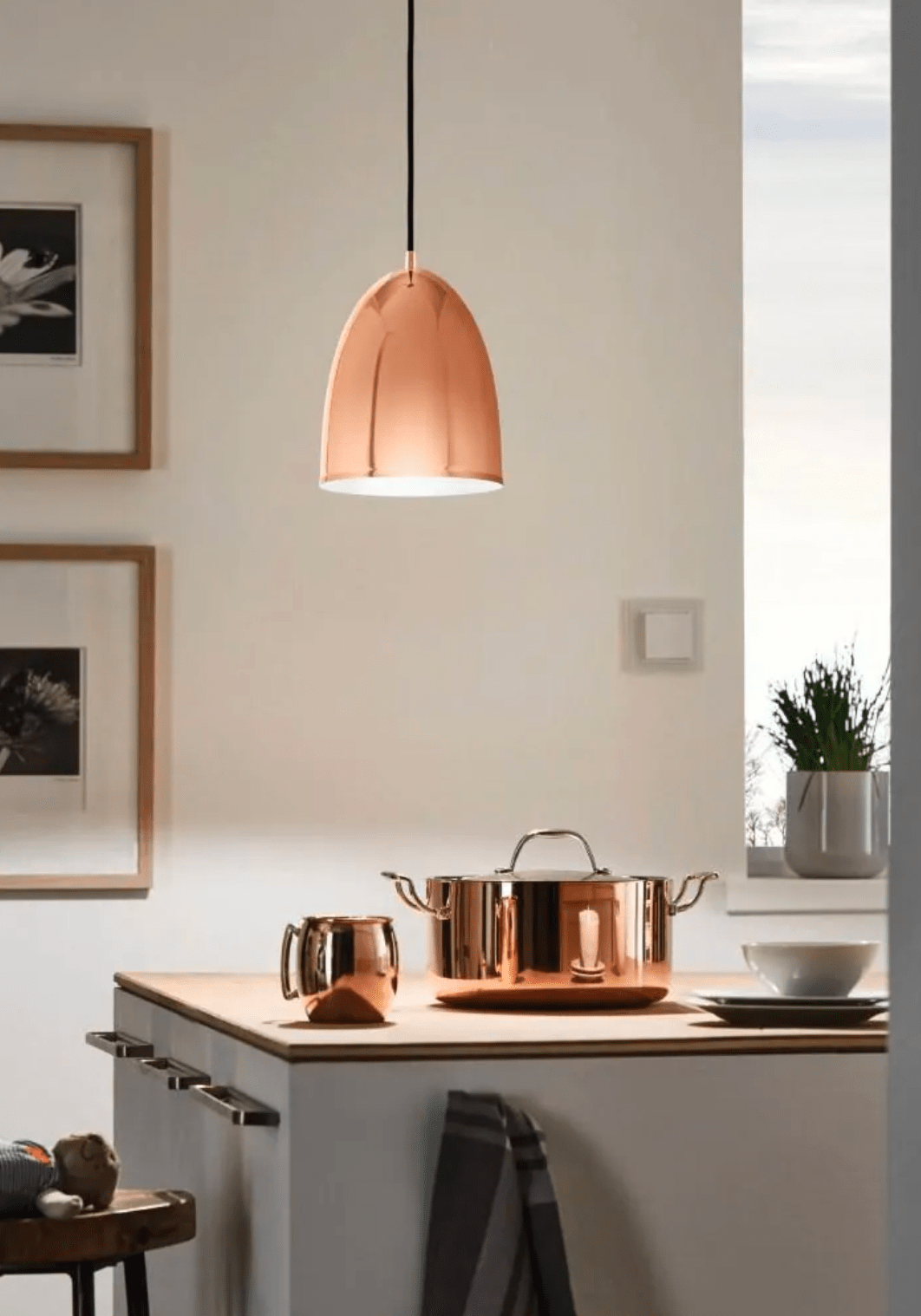 Original pendant lamp in vintage style made of steel base and a steel shade in colour copper. Hanging lamp, which will perform with a modern style and quality light your dining room, bedroom, hotel or restaurant.