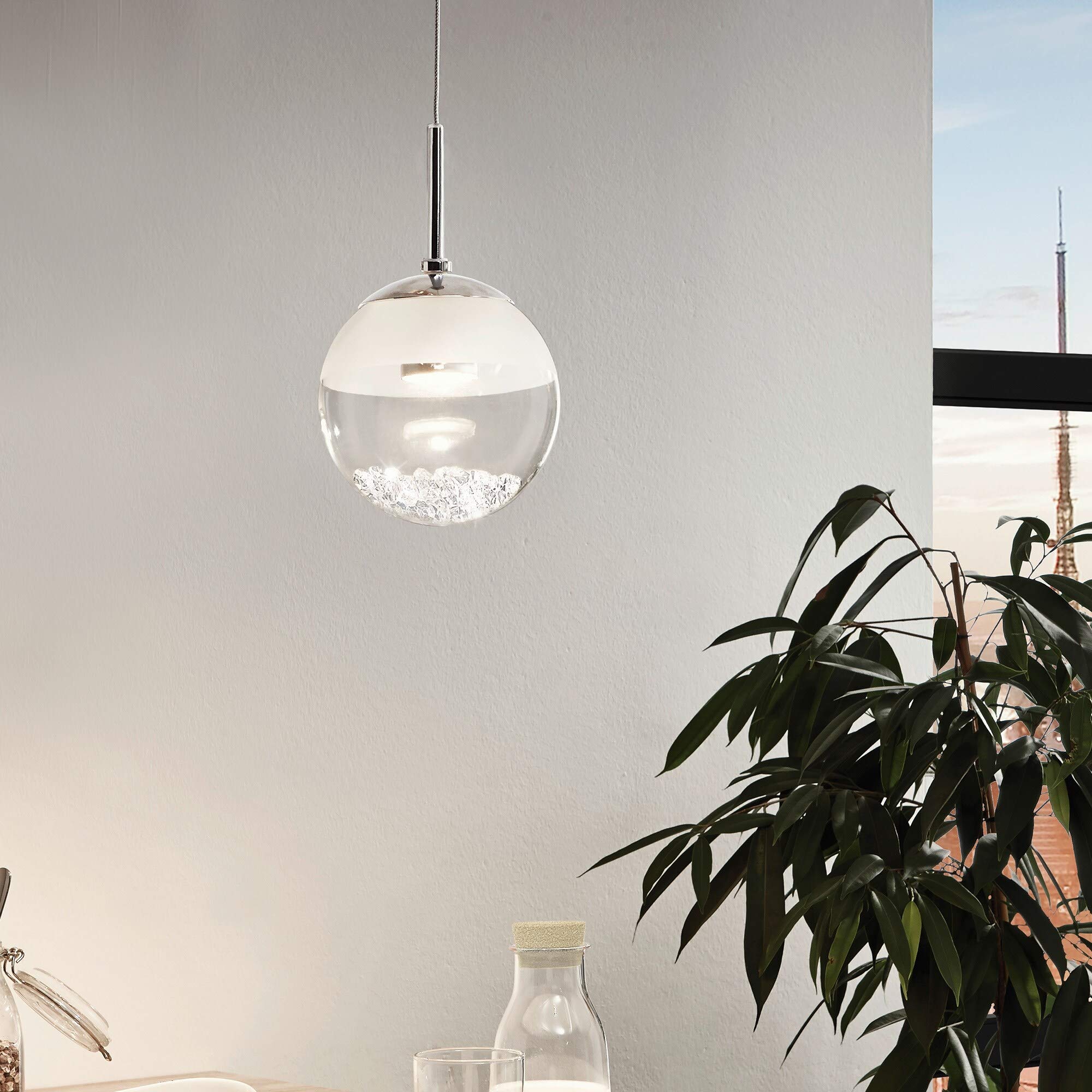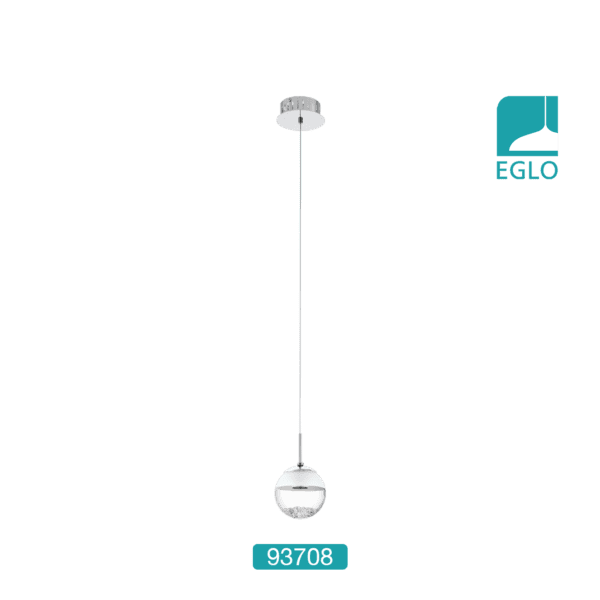 Eglo 93708 Montefio 1 One Crystal Ceiling Pendant Light In Chrome With White And Clear Crystal Glass. So