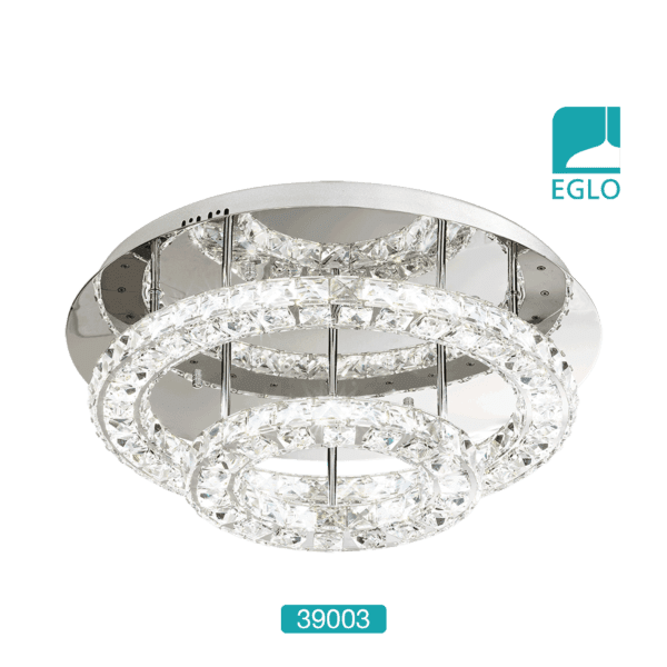 Brand   : Eglo Code   : 39003 Name   : TONERIA Material   : chrome Shade Material   : clear Fitting Type   : Ceiling Light EAN   : 9002759390037 Weight (KG)   : 9.838 Height (mm)   : 220 Diameter (mm)   : 550 Lamp Socket   : LED Lamp Type   : LED Max Wattage   : 36W Light Bulb   : Included Protection Class   :…