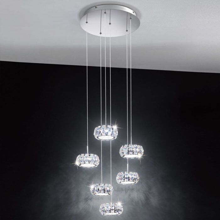 PENDANT LED 6LT 5W 4K 2700LM CHRM+CRYST CLUSTER CORLIAN