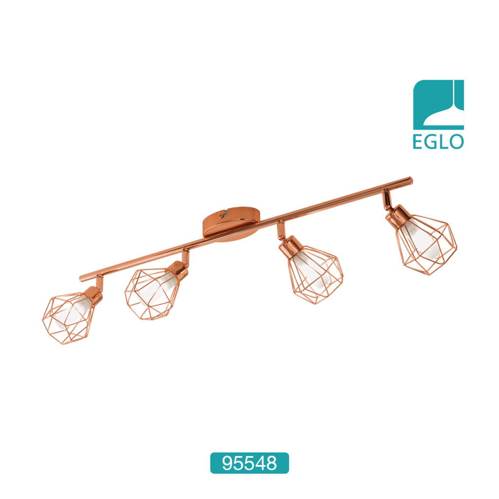 Eglo 95548 Zapata Four Light Ceiling Bar Light In Copper With White Satinated Glass. Then it make with spot; steel, copper / satin glass, white.