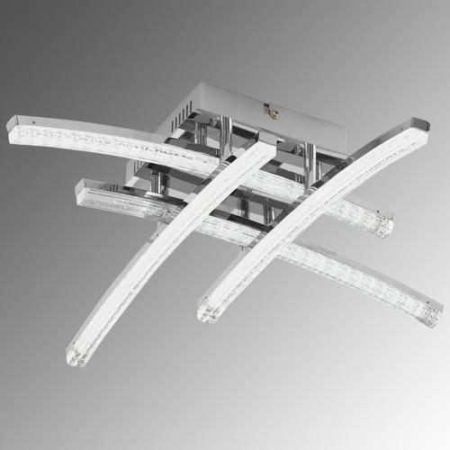 This Eglo Pertini four light LED semi flush ceiling light is finished in chrome. This straight lights are covered in transparent plastic, and run in a criss cross pattern from a simple chrome ceiling plate. Offering a warm glow when illuminated, it would make a striking addition to any room.