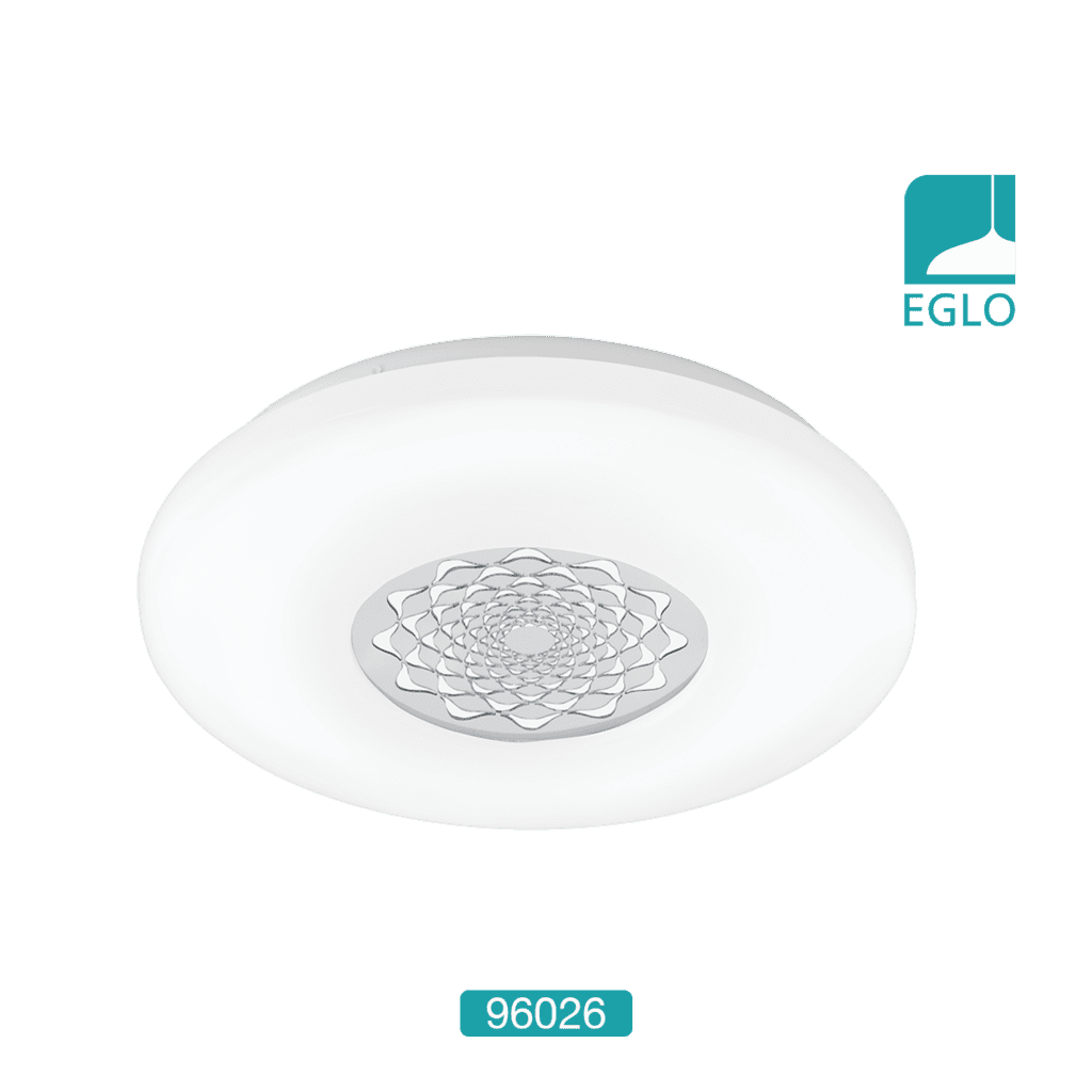 LED White Round Wall / Ceiling Light, 96026 Capasso 1 Wall/Ceiling Light In White With Chrome Pattern – Dia: 400mm