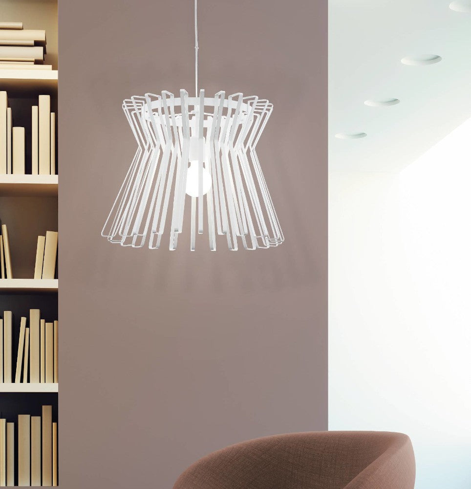 This EGLO Locubin one light ceiling pendant light is finished in steel and white and is available in different sizes. This is the largest one with a diameter of 460mm (please see website for alternatives). The unusual appearance would make this light an instant talking point in any room.