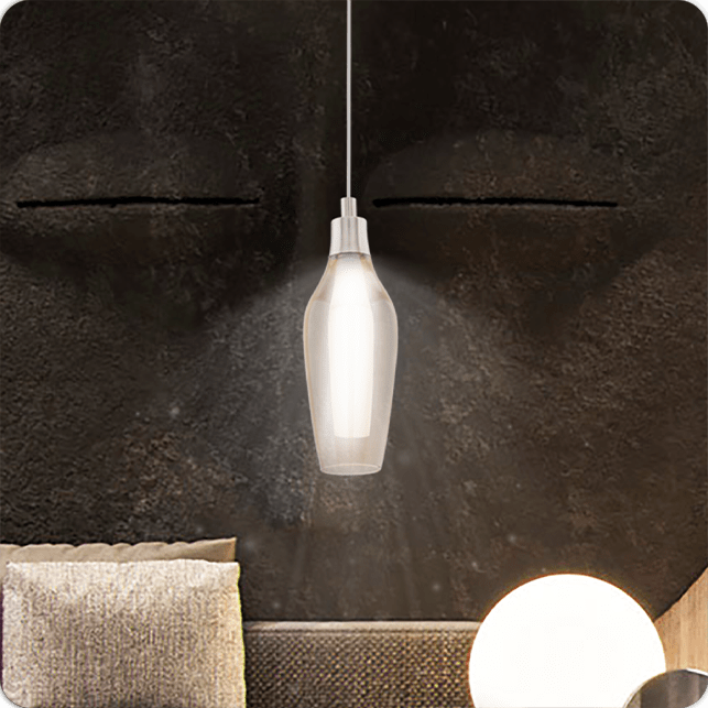This Eglo Pontevedra one light ceiling pendant light is finished in satin nickel and comes with a glass shade. The shade is amber glass and has a white inner. This unusual light is stiking in design and would make a wonderful addition to any room.