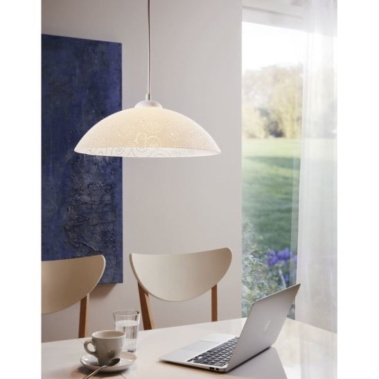 Eglo 96069 Vetro One Light Ceiling Pendant Light In White With Criss-Crossed White And Clear Glass