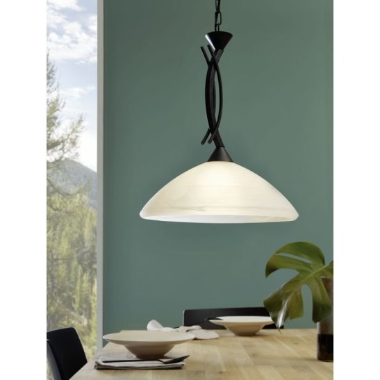 Eglo 91432 Vinovo One Light Ceiling Pendant Light In Dark Brown With Alabaster White Glass Shade. Then for detail, please see below.