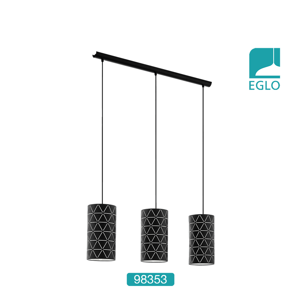 This EGLO Ramon three light linear ceiling pendant is finished in steel and comes complete with three black and white shades. This stunning light has a geometric design which has been cut out to allow the light to shine through the shades when illuminated. It would look stunning in any room, in particular over a breakfast bar or dining table.