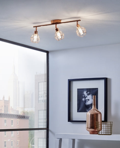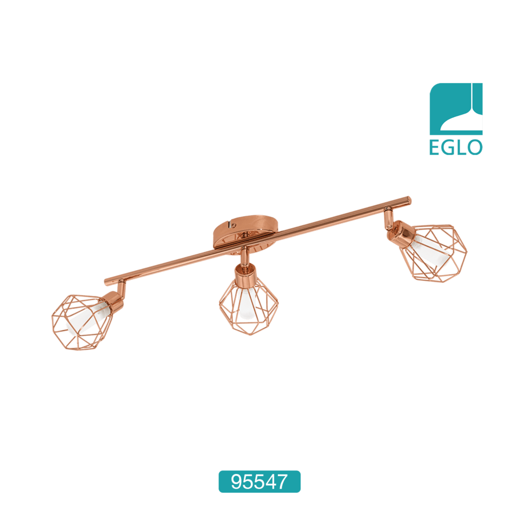 Eglo 95547 Zapata Three Light Ceiling Bar Light In Copper With White Satinated Glass. So the specs is spot; steel, copper / satin glass, white.
