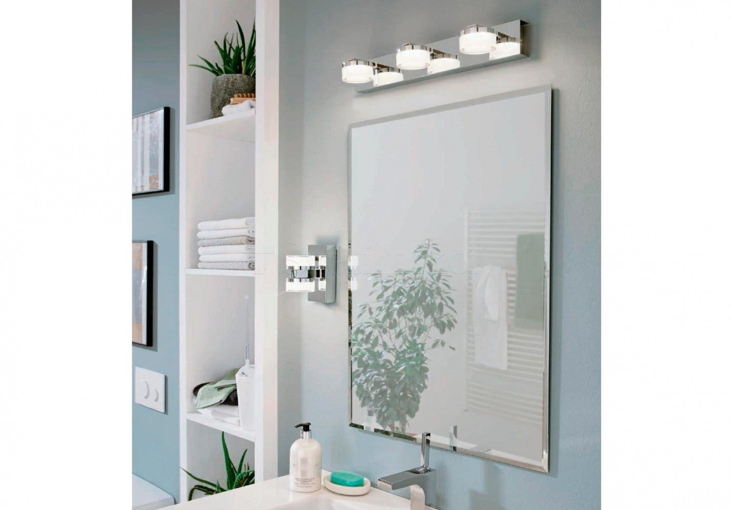 Eglo 96541 Romendo 1 Two Light Up/Down Dimmable Bathroom Wall Light In Chrome. It shines the light beautifully up and down the wall when it turn on. The inexpensive LED lamps would make this an incredible addition to any bathroom, in particular next to a mirror.