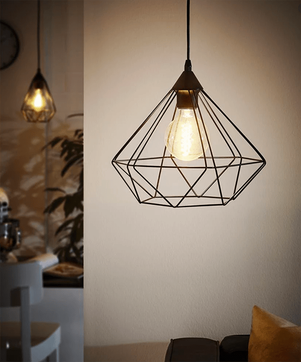 This Eglo Tarbes ceiling pendant light is finished in black and has a diameter of 325mm. The sleek lines and cage style of this light would make it a stunning addition to any room. It is suspended on black cable and is available in two different sizes.