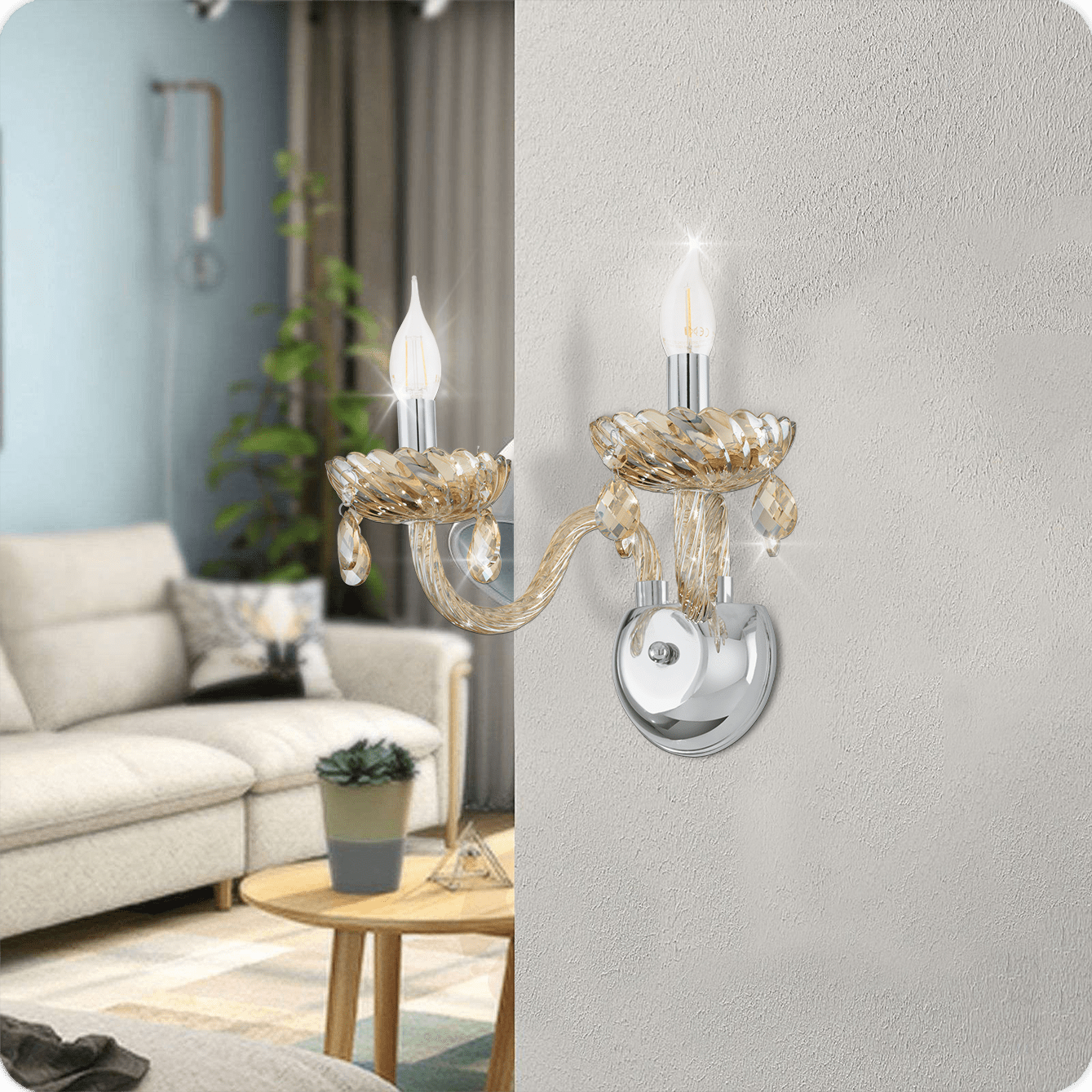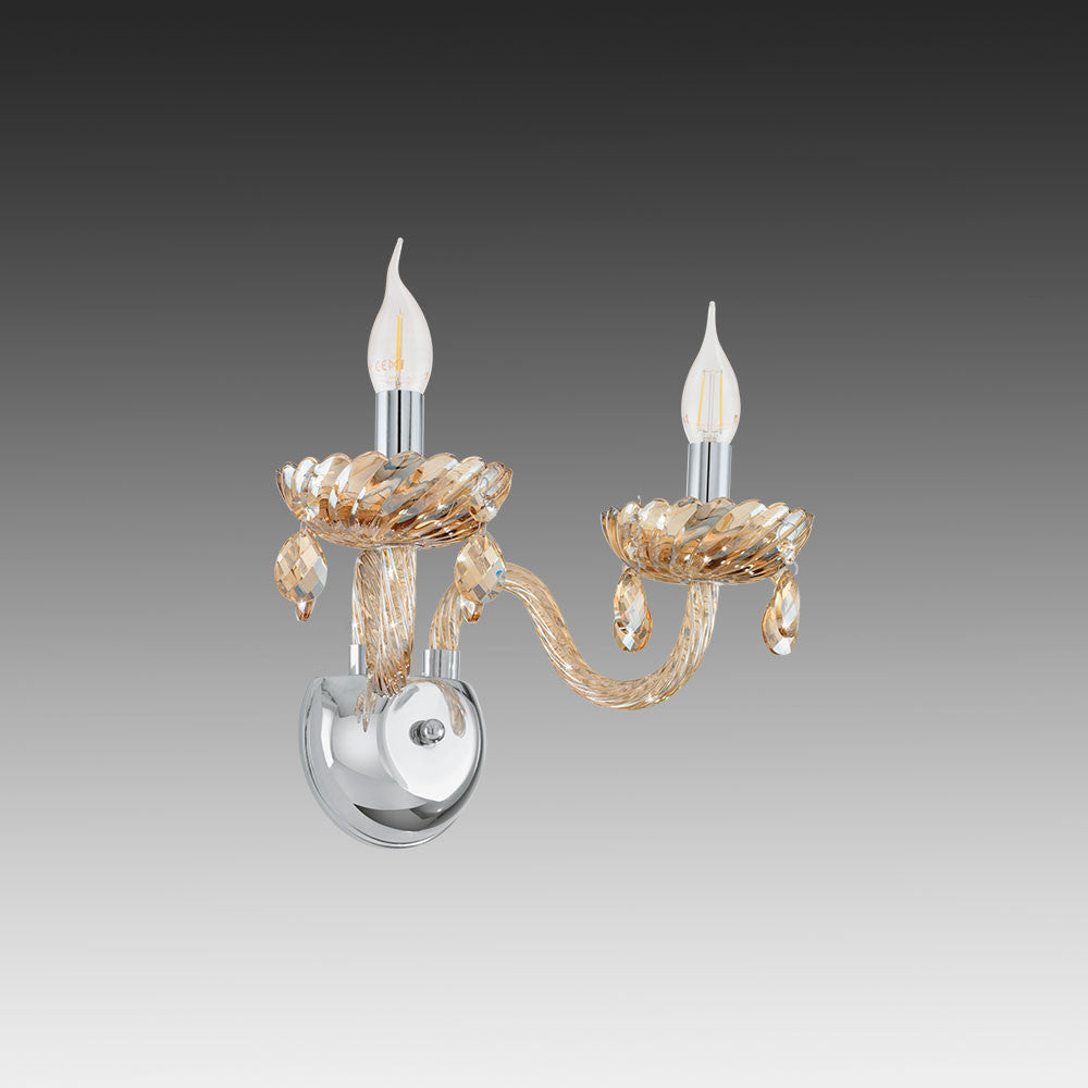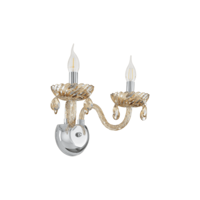 This Eglo Basilano two light wall light is finished in chrome and comes complete with cognac glass shades.ï¾ The beaded detail and ornate appearance of this light is suited to traditional decor styles, although would not look out of place in modern environments.ï¾