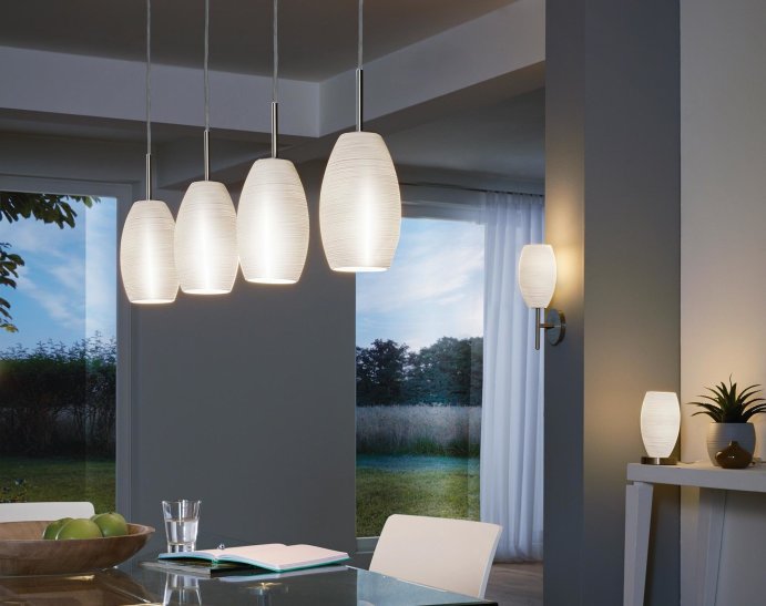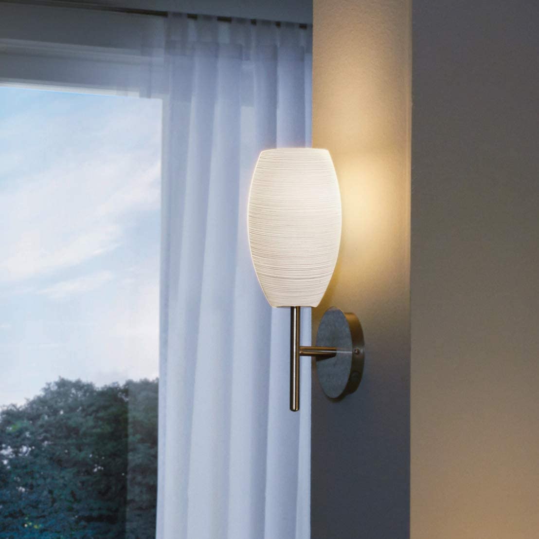 This Eglo Batista 3 one light wall light is finished in satin nickel and comes complete with a white glass shade. The stunning shade resembles a honeycombe in shape and has a special wipe effect across the handmade glass. Supported by a lovely satin nickel wall plate and arm it would make a striking addition to any room.