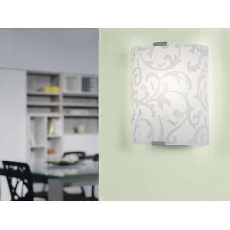 wall / ceiling luminaire;steel,silver /printed glass,white;E27